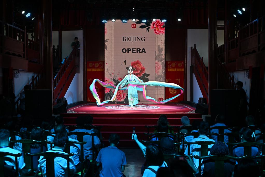穿過小橋流水,外賓們來到青云胡同。在有著四百年歷史的顏料會館,外賓們不僅了解到東城區(qū)會館活化利用、“會館有戲”等文化創(chuàng)新舉措,還觀看了中國傳統(tǒng)京劇表演,親身感受老會館煥發(fā)出的新魅力。