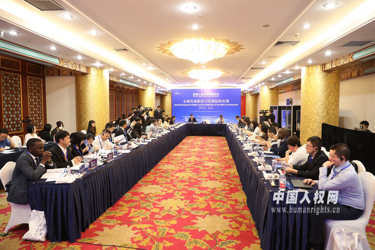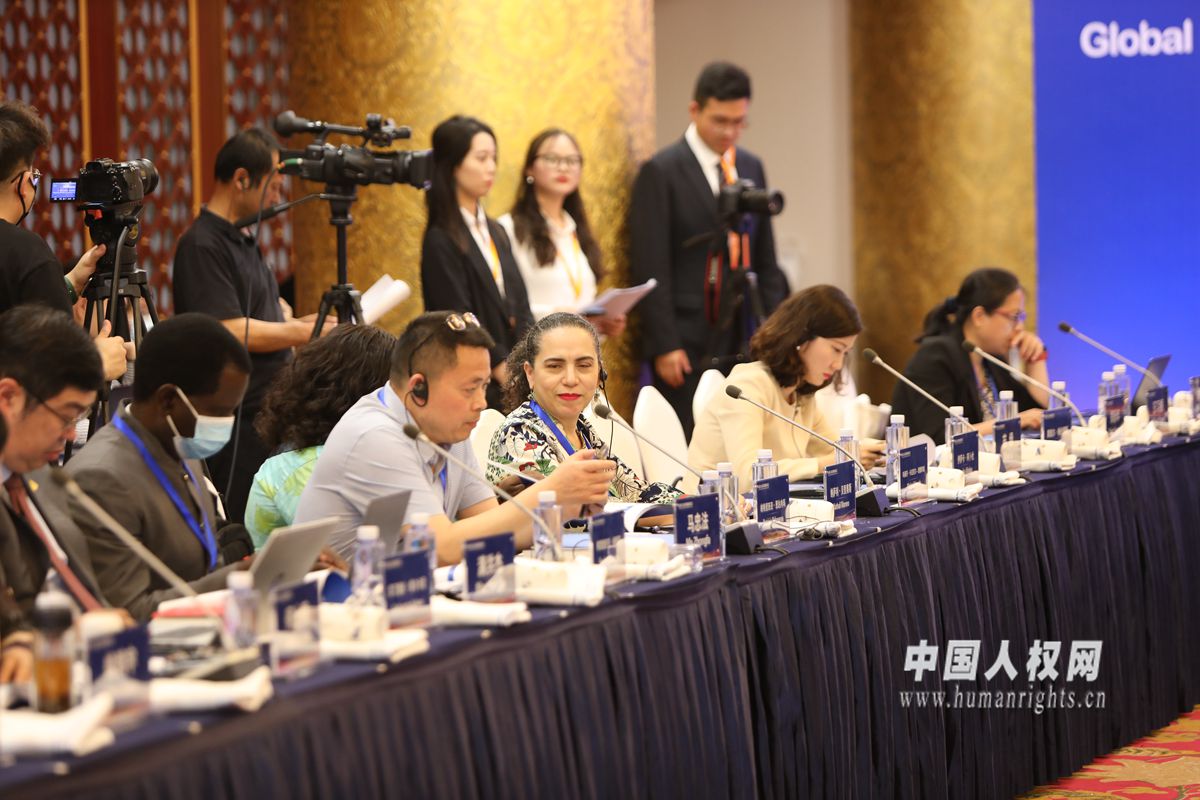 全球人權治理高端論壇14日-15日在北京舉行。圖為部分與會嘉賓在“分論壇二:全球發(fā)展倡議與發(fā)展權的實現(xiàn)”上交流研討。 攝影:欒海軍