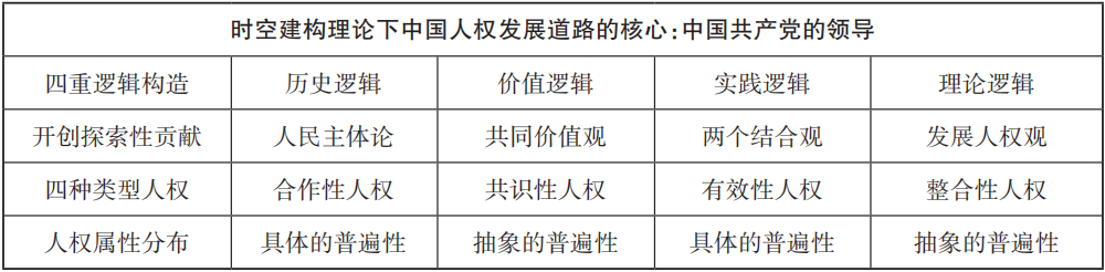 表1 時空建構(gòu)理論下中國人權(quán)發(fā)展道路的邏輯構(gòu)造與開創(chuàng)探索性貢獻(xiàn)