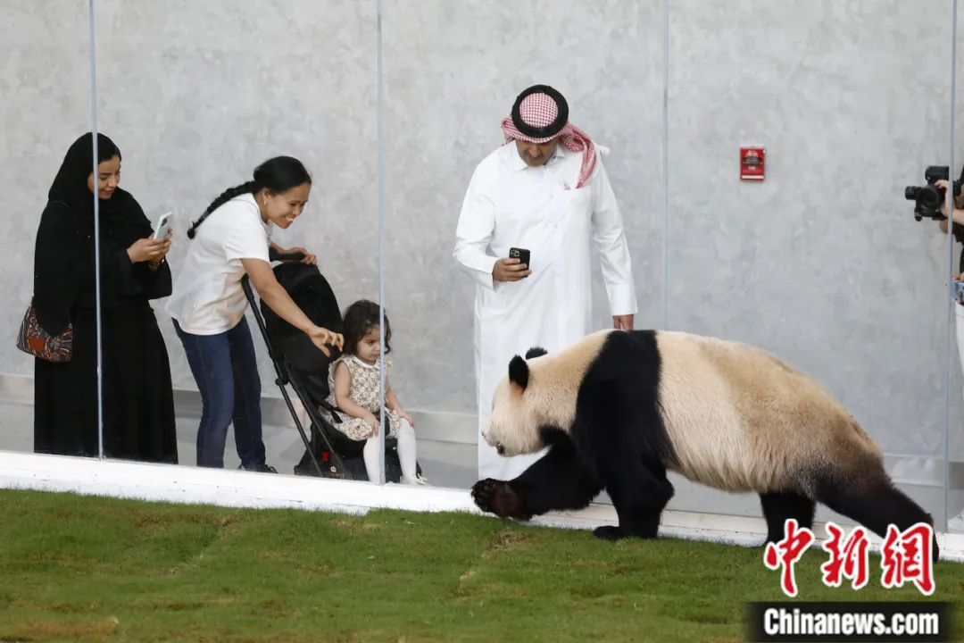 2022年11月,首對(duì)中國赴卡塔爾大熊貓“京京”與“四海”正式與當(dāng)?shù)孛癖娨娒?,掀?ldquo;熊貓熱”。富田 攝