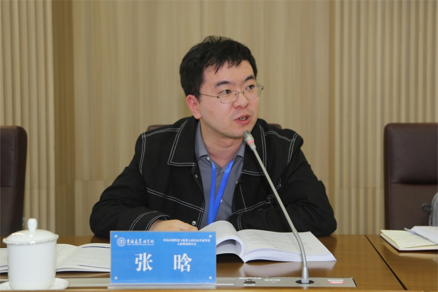 華東政法大學(xué)博士后研究人員、中共重慶市委黨校(重慶行政學(xué)院)法學(xué)教研部張晗老師在“‘人權(quán)’何以中國”主題發(fā)言中,從歷史的“中國”、文化的“中國”、政治上的“中國”三個維度出發(fā),分析了中國人權(quán)發(fā)展道路的特殊性如何轉(zhuǎn)換為普遍性的問題。張晗老師指出,“中國人權(quán)發(fā)展道路”并非“人權(quán)例外論”,在順應(yīng)歷史潮流的同時,也在歷史、文化中發(fā)掘自身的獨特性,解決自身問題,并指向全人類共同的價值和尊嚴的目標,應(yīng)當植根于中華文明,使“中國”可以在“人權(quán)”上獲得具有普遍意義的立場、觀點和方法論。