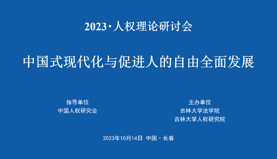 2023年10月14日,“中國式現(xiàn)代化與促進人的自由全面發(fā)展”人權(quán)理論研討會在吉林長春舉辦。本次會議由中國人權(quán)研究會指導(dǎo),吉林大學(xué)人權(quán)研究院、吉林大學(xué)法學(xué)院主辦,來自中國人權(quán)研究會、中國外文局、中央黨校、北京理工大學(xué)、東北師范大學(xué)、東南大學(xué)、華中科技大學(xué)、吉林大學(xué)、暨南大學(xué)、南開大學(xué)、中國人民大學(xué)、中國政法大學(xué)、中南大學(xué)、中央民族大學(xué)、廣東工業(yè)大學(xué)、廣州大學(xué)、華東政法大學(xué)、遼寧大學(xué)、南京師范大學(xué)、西北政法大學(xué)、西南政法大學(xué)、新疆大學(xué)等中央部門、組織機構(gòu)、高等院校的五十余位專家學(xué)者、研究者、實務(wù)工作者參與研討。