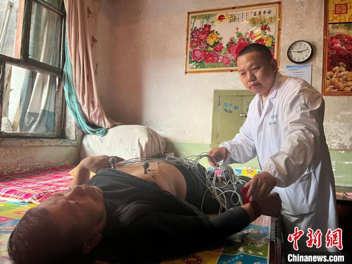 村醫(yī)燕濤正在為村民做心電圖。范麗芳攝
