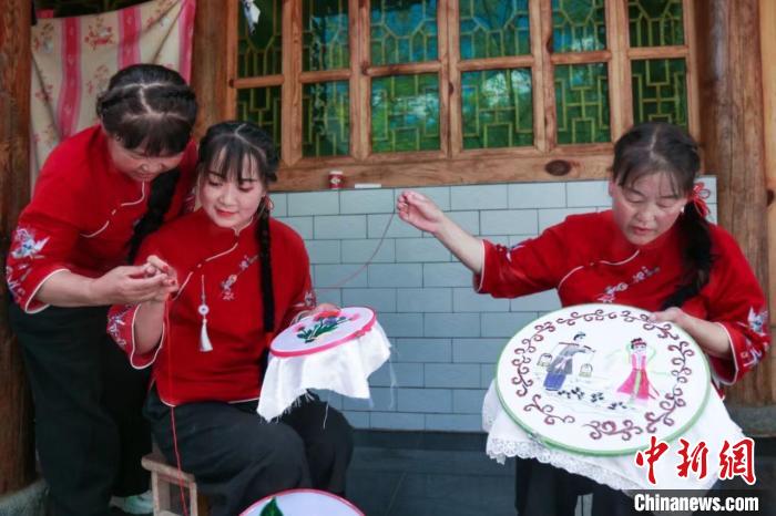 2023年8月,西和縣繡娘展示當(dāng)?shù)卮汤C技藝。(資料圖)西和縣融媒體中心供圖