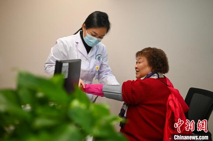 圖為重慶75歲的民主村居民陳代蓉在衛(wèi)生服務(wù)站內(nèi)做檢查?!≈行律缬浾?何蓬磊 攝