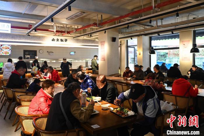 圖為重慶市九龍坡區(qū)謝家灣街道民主村內(nèi)新建的社區(qū)食堂吸引食客。 中新社記者 何蓬磊 攝