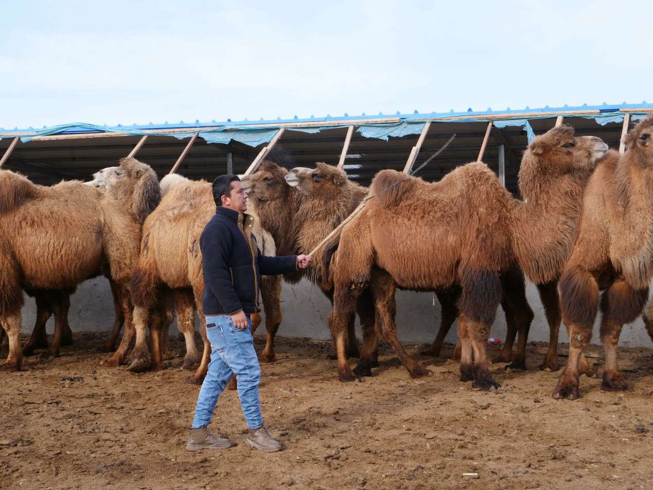 在大學(xué)畢業(yè)后,努爾艾力·喀斯木一開始在伊吾縣淖毛湖鎮(zhèn)的工廠上班。2018年,他回到了下馬崖鄉(xiāng),接手了爸爸經(jīng)營(yíng)的駱駝養(yǎng)殖合作社。“當(dāng)時(shí)只有150峰駱駝,這幾年規(guī)模逐漸擴(kuò)大,最多的時(shí)候有1300多峰,現(xiàn)在穩(wěn)定在900多峰。”
