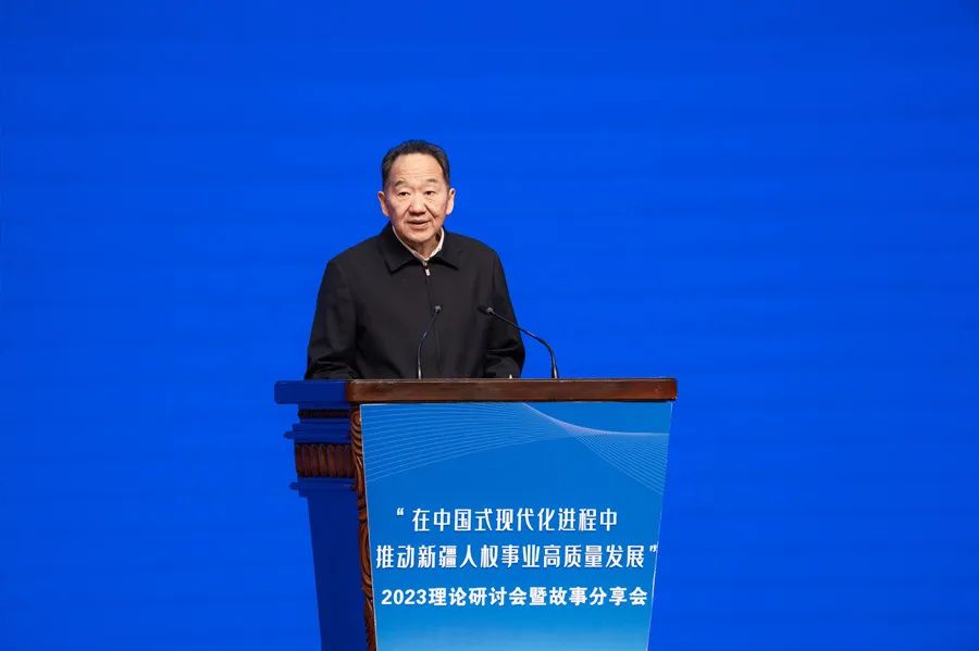 “在中國(guó)式現(xiàn)代化進(jìn)程中推動(dòng)新疆人權(quán)事業(yè)高質(zhì)量發(fā)展”2023理論研討會(huì)暨故事分享會(huì),今日在新疆烏魯木齊舉行。中國(guó)人權(quán)研究會(huì)常務(wù)副會(huì)長(zhǎng)蔣建國(guó)出席會(huì)議并發(fā)表致辭,以下為致辭全文。