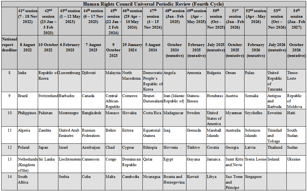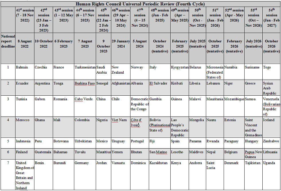 Human Rights Council Universal Periodic Review (Fourth Cycle)