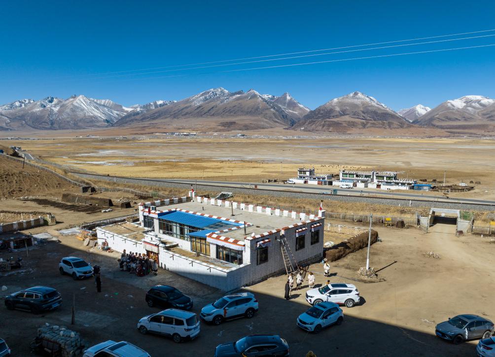 這是斯曲旺姆在西藏拉薩市當(dāng)雄縣公塘鄉(xiāng)甲根村的家(2月10日攝,無人機照片)。新華社記者 孫非 攝