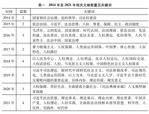第一,專門性研究數(shù)量較少。根據(jù)前文的統(tǒng)計分析和對整體研究情況的綜合梳理,可以發(fā)現(xiàn)相關研究數(shù)量顯著增加,也逐漸出現(xiàn)對習近平關于尊重和保障人權重要論述的專門研究。但總體而言,多數(shù)研究只是將習近平關于尊重和保障人權重要論述視為文章某一部分的理論基礎或支撐點,屬于淺顯意義上的泛泛而談,很難具有顯著的參考價值,專門對習近平關于尊重和保障人權重要論述展開研究的文獻數(shù)量相對較少,阻礙了整體研究的深入推進。