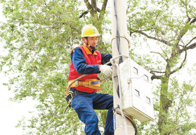 4年前,楊棟身邊多了一個徒弟。今年26歲的楊智松,穿著紅色馬甲,背著電工包,有板有眼地跟著師傅爬電線桿、修線路。“這孩子做事用心,手腳也勤快。”說話間,楊棟瞥一眼一旁的徒弟,眼中滿是關(guān)愛,似是打量年輕時的自己。