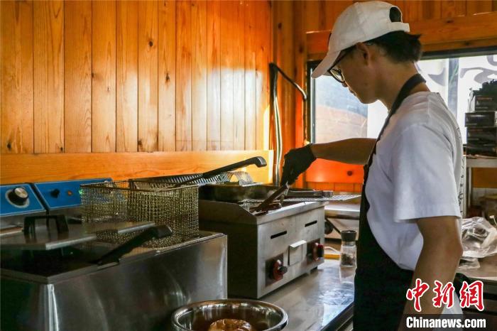 鄒建斌在漢堡店后廚忙碌。徐帆 供圖