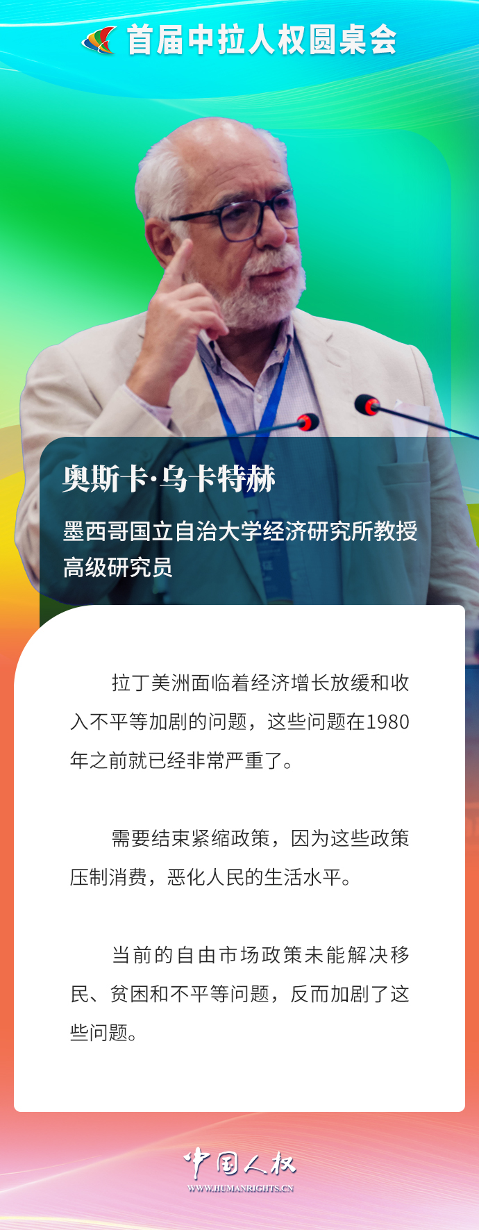 墨西哥國立自治大學經(jīng)濟研究所教授、高級研究員奧斯卡·烏卡特赫作題為《拉丁美洲經(jīng)濟問題診斷:1980-2024》的主旨發(fā)言。