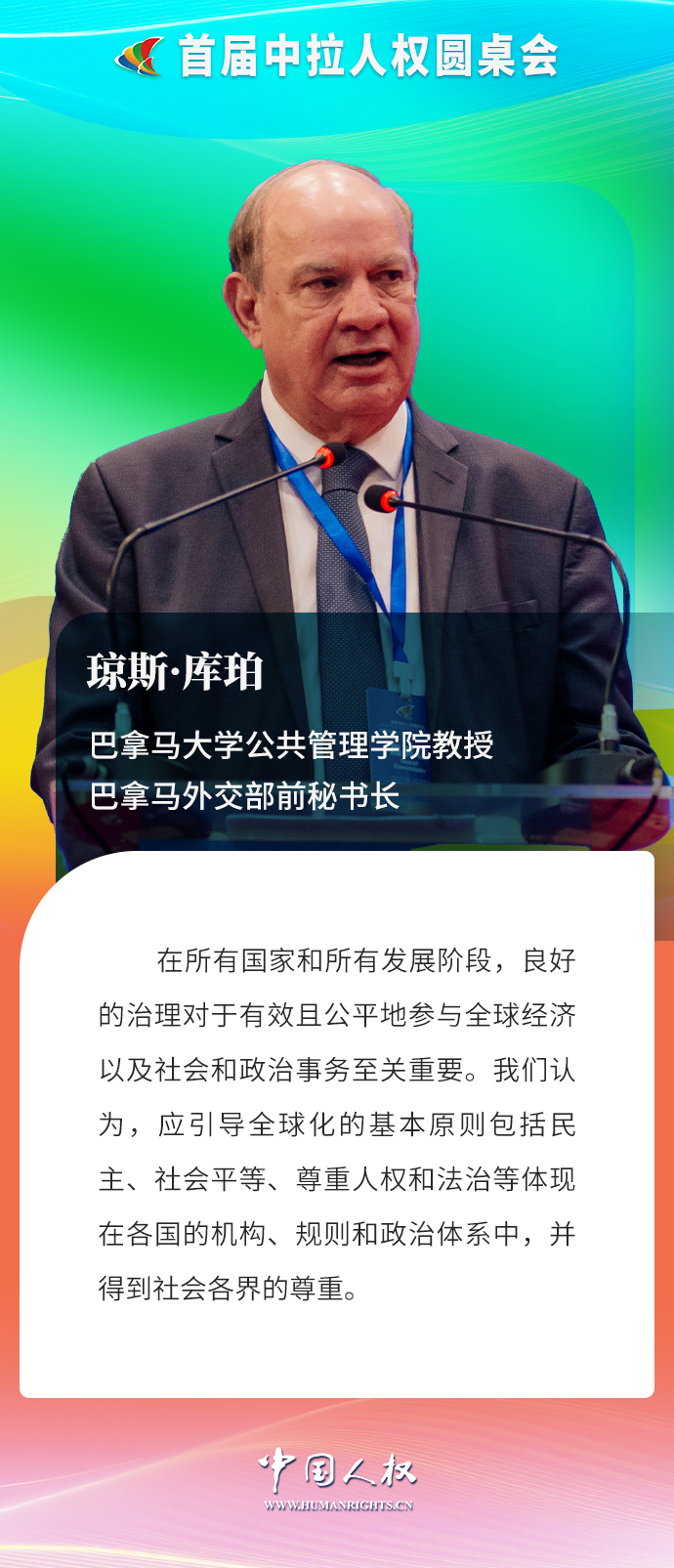 巴拿馬大學公共管理學院教授、巴拿馬外交部前秘書長瓊斯·庫珀作題為《全球人權(quán)治理的挑戰(zhàn)與解決方案》的主旨發(fā)言。