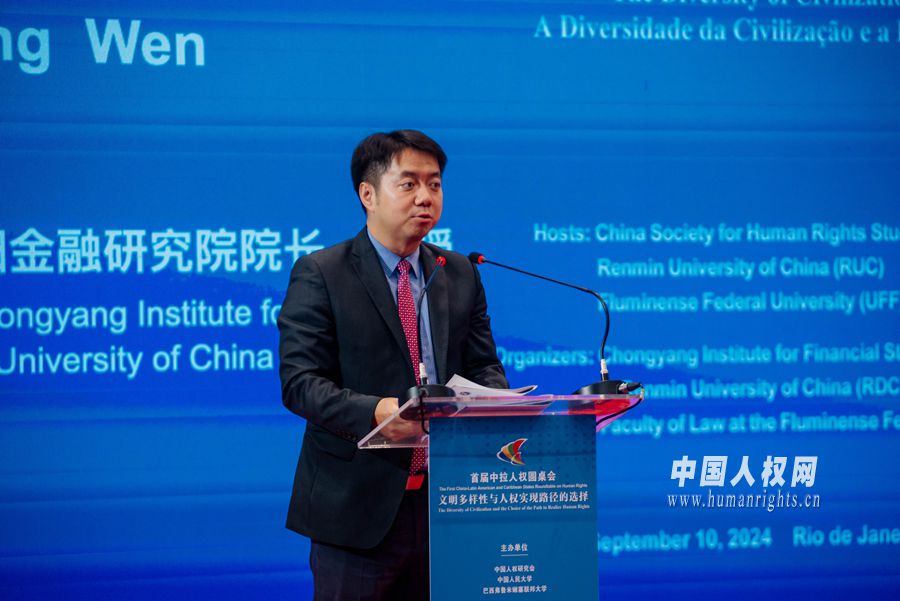 中國人民大學(xué)重陽金融研究院院長、教授王文在首屆中拉人權(quán)圓桌會閉幕式上作總結(jié)發(fā)言