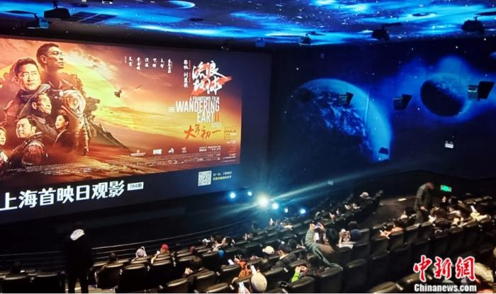 2023年1月22日,影迷在上海一電影院觀看國產科幻片《流浪地球2》。陳玉宇 攝