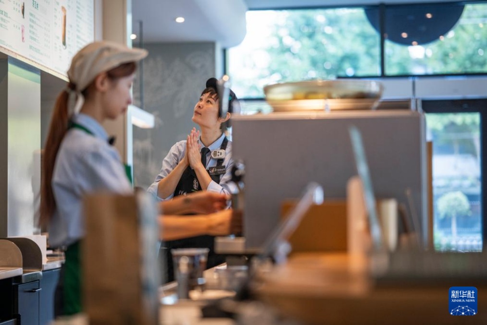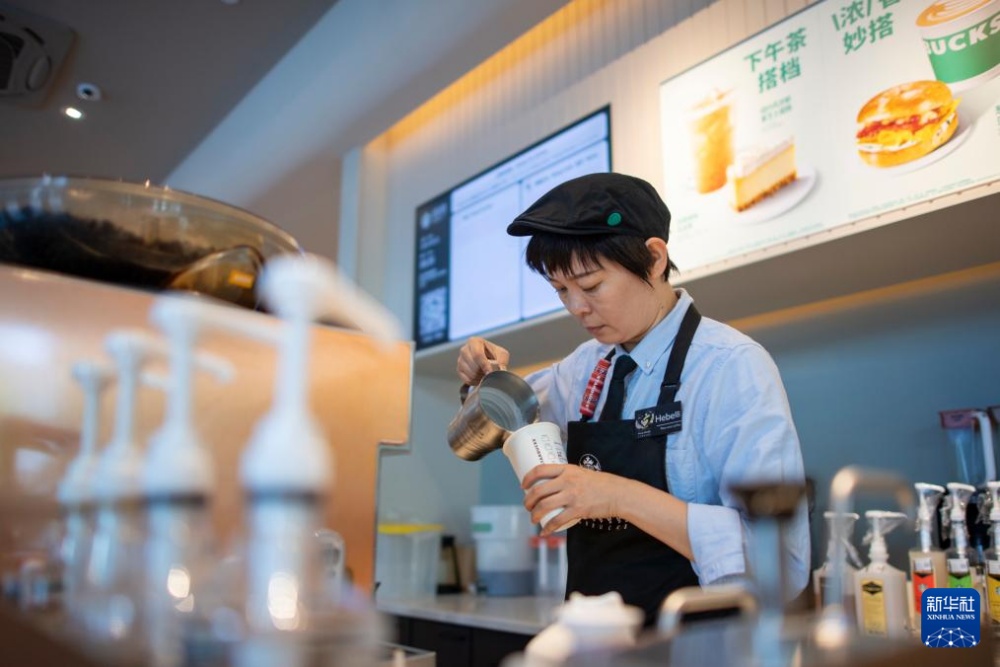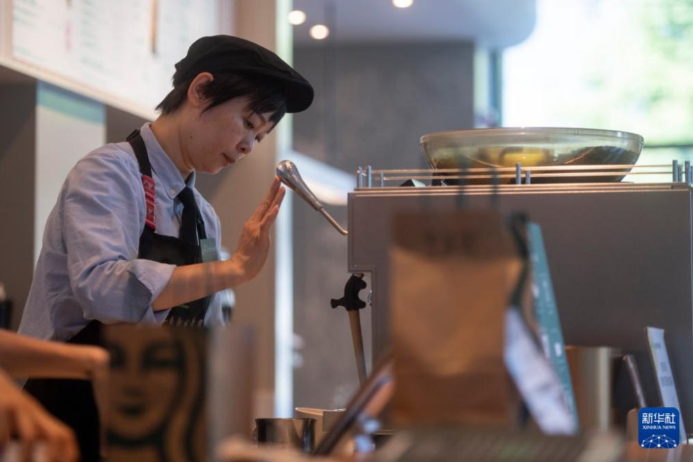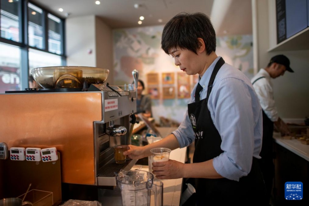 6月16日,陳媛媛在制作咖啡。新華社記者 伍志尊 攝