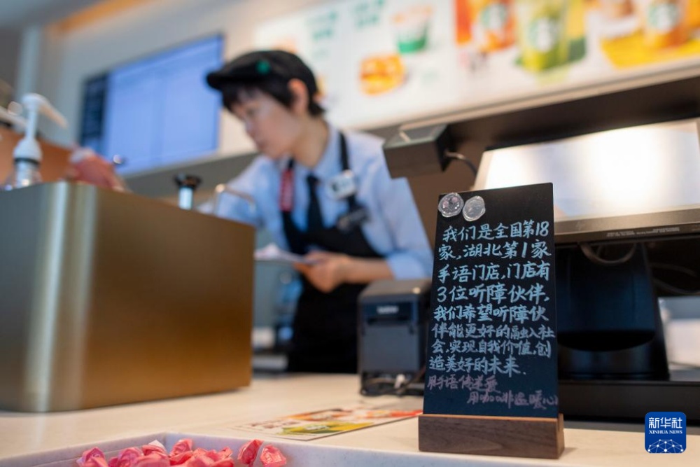去年,當(dāng)?shù)弥A中首家“無聲”星巴克將在家鄉(xiāng)武漢開業(yè)時(shí),陳媛媛毫不猶豫地申請來到這里工作。在這家咖啡店里,她和其他咖啡師一起,為顧客提供專業(yè)、熱情的服務(wù)。