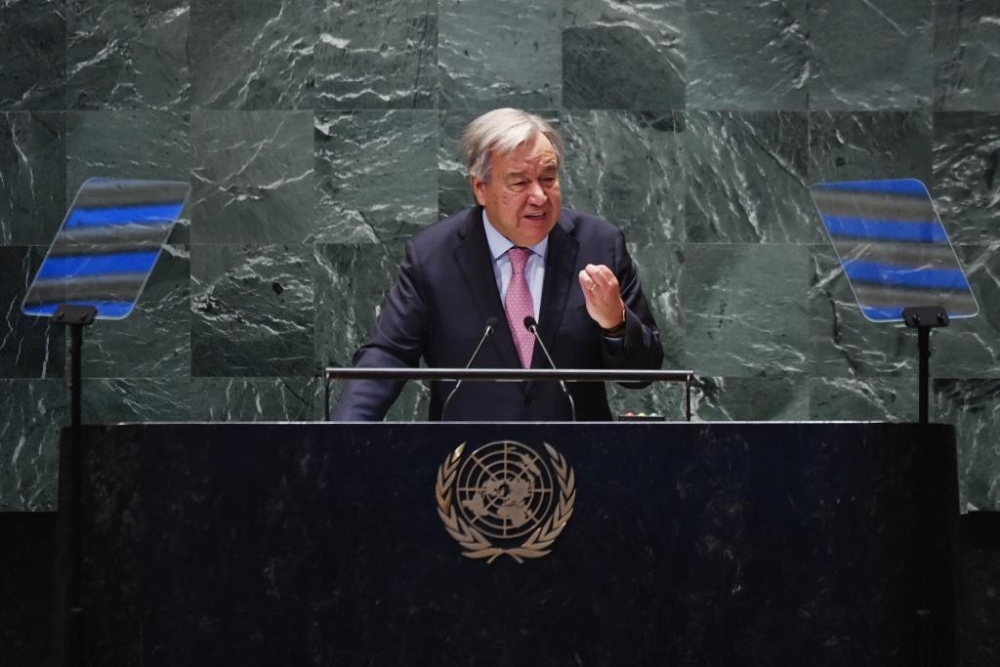 9月22日,在位于紐約的聯(lián)合國(guó)總部,聯(lián)合國(guó)秘書長(zhǎng)古特雷斯在聯(lián)合國(guó)未來峰會(huì)上致辭。新華社記者李睿攝