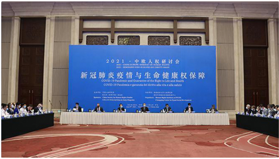 2021年6月8日,中國(guó)人權(quán)研究會(huì)和意大利《世界中國(guó)》雜志共同舉辦“2021·中歐人權(quán)研討會(huì)”,來自世界衛(wèi)生組織、聯(lián)合國(guó)人權(quán)高專辦等國(guó)際組織的代表,和來自歐洲國(guó)家的政要、人權(quán)領(lǐng)域?qū)<覍W(xué)者等以線上線下相結(jié)合的方式參會(huì)。