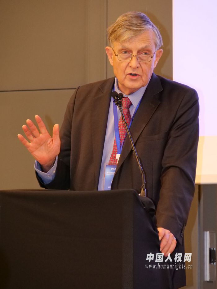 德國聯(lián)邦州黑森州歐洲與國際事務(wù)部門前負(fù)責(zé)人博喜文作題為《現(xiàn)代人類命運(yùn)共同體中的人權(quán)問題》的主旨發(fā)言。