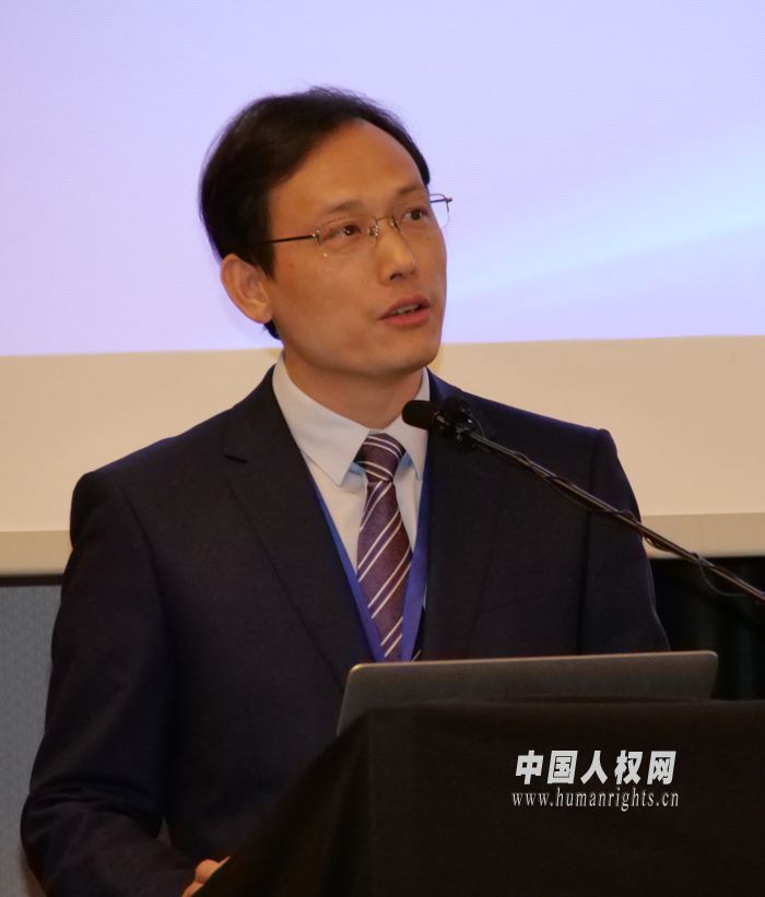 中南大學(xué)人文社科處處長(zhǎng)、人權(quán)研究中心執(zhí)行主任、法學(xué)院教授毛俊響作題為《新興權(quán)利與普遍人權(quán)》的主旨發(fā)言。