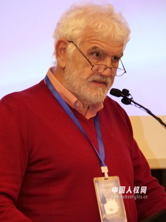 捷克左翼研究所學(xué)術(shù)委員會(huì)主席揚(yáng)·坎貝爾作題為《從人權(quán)到生命安全權(quán)》的主旨發(fā)言。