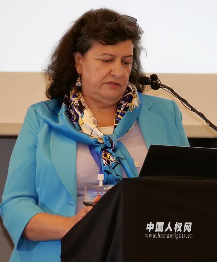 保加利亞科學(xué)院國家與法律研究所、現(xiàn)代中國研究中心教授瑪麗安娜·田作題為《中國保障公民社會(huì)經(jīng)濟(jì)權(quán)利的政策 (良好實(shí)踐)》的主旨發(fā)言。