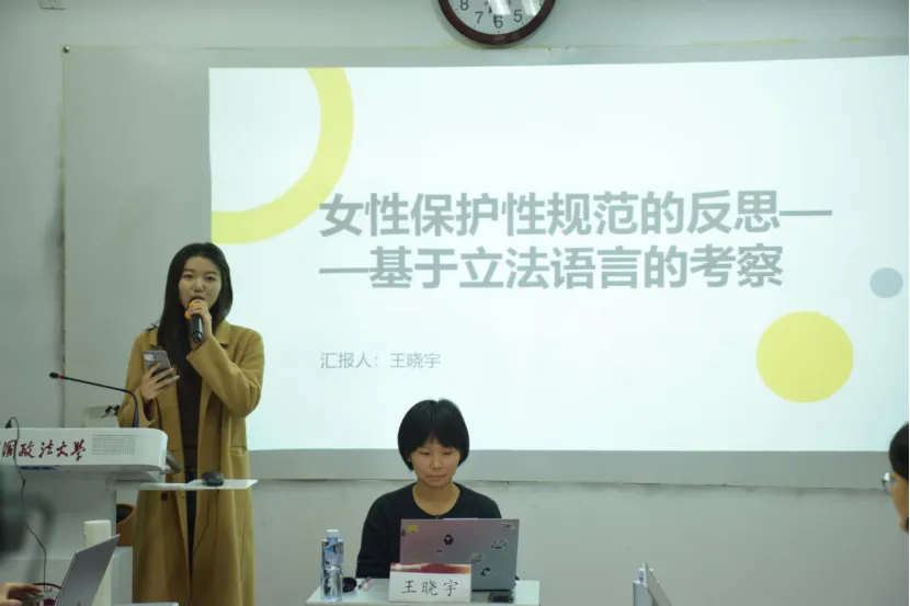 本期論壇主講嘉賓王曉宇作了主題為“女性保護(hù)性規(guī)范的反思——基于立法語(yǔ)言的考察”的報(bào)告。主題報(bào)告分為四個(gè)部分。