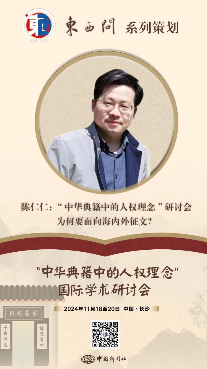 “中華典籍中的人權(quán)理念”國際學(xué)術(shù)研討會18日至20日在湖南大學(xué)岳麓書院舉辦。近日,湖南大學(xué)岳麓書院副院長陳仁仁接受了中新社“東西問”專訪,解析古代典籍中的人權(quán)理念與實踐,及其對于世界人權(quán)事業(yè)發(fā)展和文明交流互鑒的意義。