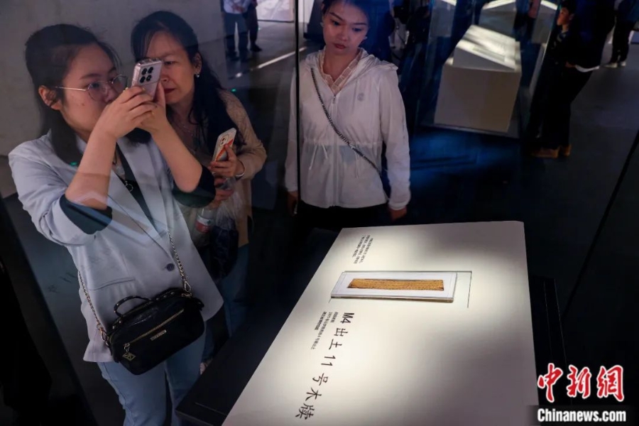 2024年4月30日,湖北武漢,“惠此簡書——睡虎地秦墓出土簡牘”展覽在湖北省博物館開展。中新社記者 張暢 攝