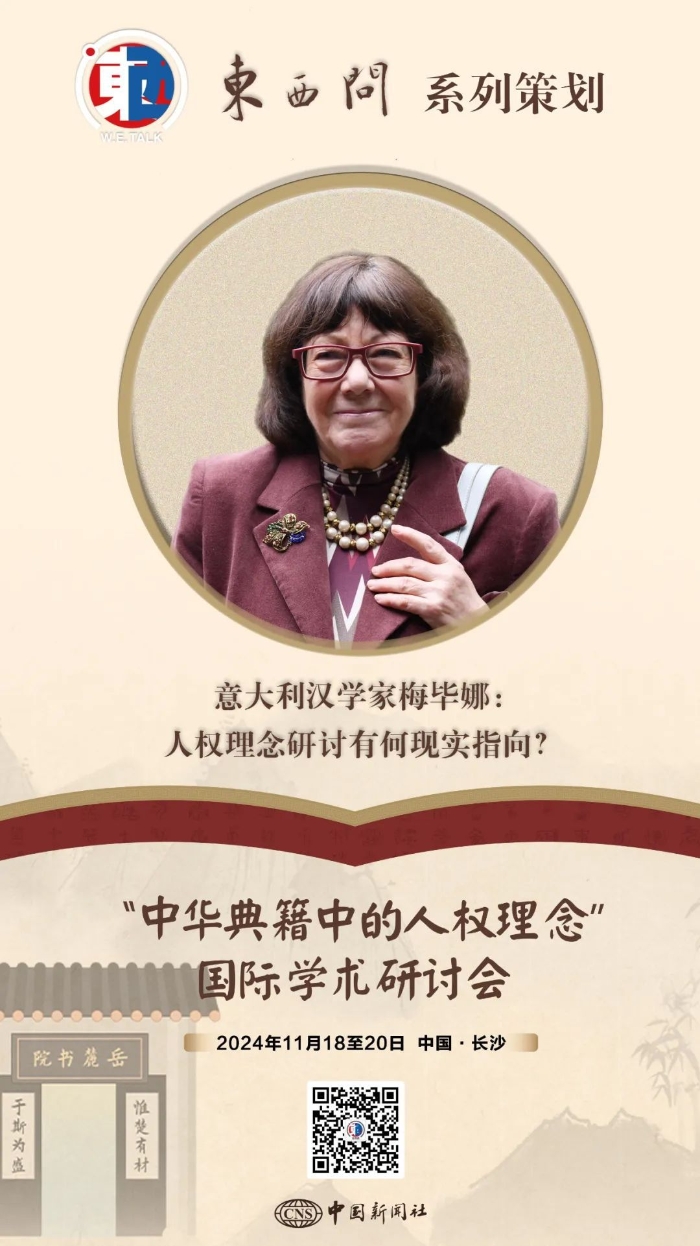 近日,梅畢娜在中國長沙參加“中華典籍中的人權(quán)理念”國際學(xué)術(shù)研討會,并作為嘉賓在開幕式上致辭。其間,她接受中新社“東西問”專訪,講述對人權(quán)理念的切身認(rèn)識與對中西文化交流的思考。