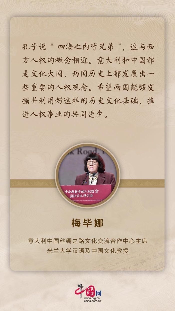 與會專家認(rèn)為,“人權(quán)”作為一個現(xiàn)代概念,雖在中華典籍中未有直接表述,但中國傳統(tǒng)思想并不缺乏“人權(quán)”理念及相關(guān)實踐。全國政協(xié)常委、民族和宗教委員會副主任、中國人權(quán)研究會常務(wù)副會長蔣建國便在致辭中講到,“作為有百萬年人類史、一萬多年文化史、五千多年文明史的國家和民族,人文底蘊無比深厚,人權(quán)文明自在其中。”