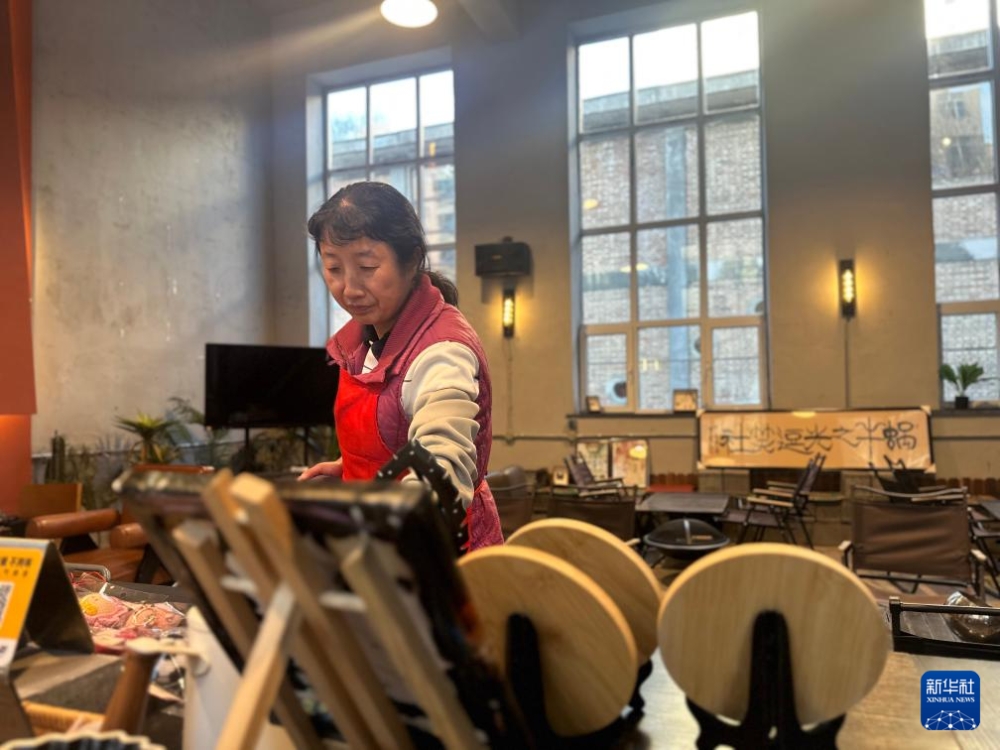 11月27日,在西寧市“蝸牛之光”心智障礙殘疾人咖啡體驗館,王昵娜在打掃桌面。新華社記者 張子琪 攝