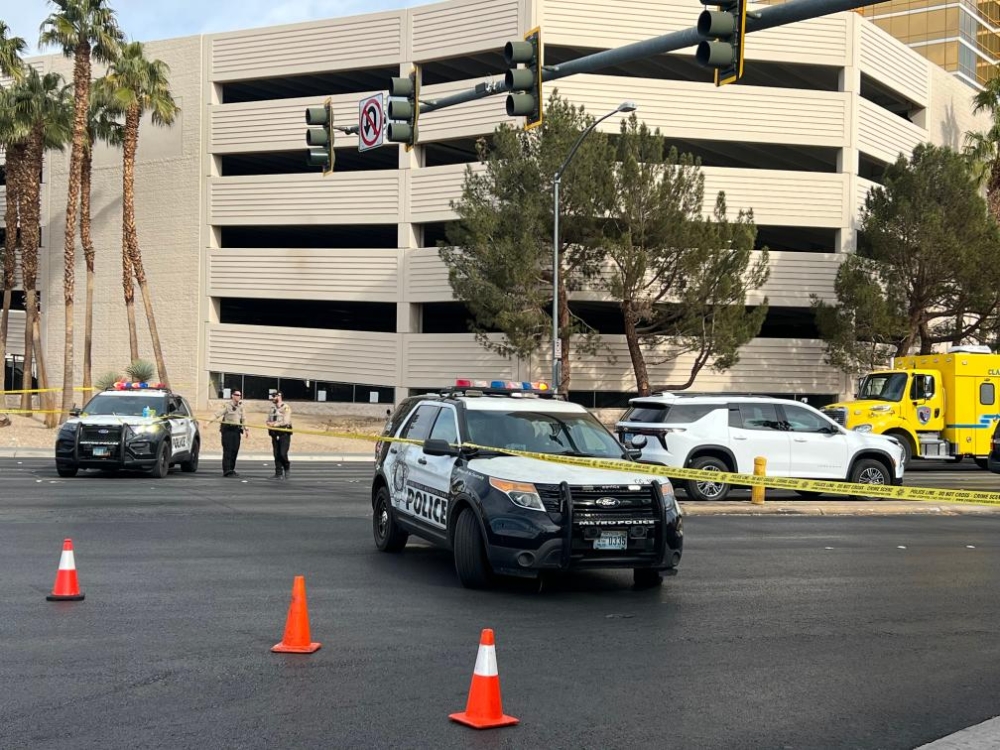 2025年1月1日,在美國內(nèi)華達(dá)州拉斯維加斯,警方封鎖發(fā)生電動(dòng)汽車爆炸事件的特朗普酒店門前區(qū)域。新華社記者 譚晶晶 攝