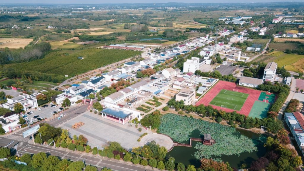安徽省滁州市鳳陽縣小崗村景色(2024年9月27日攝,無人機照片)。新華社記者 張端 攝