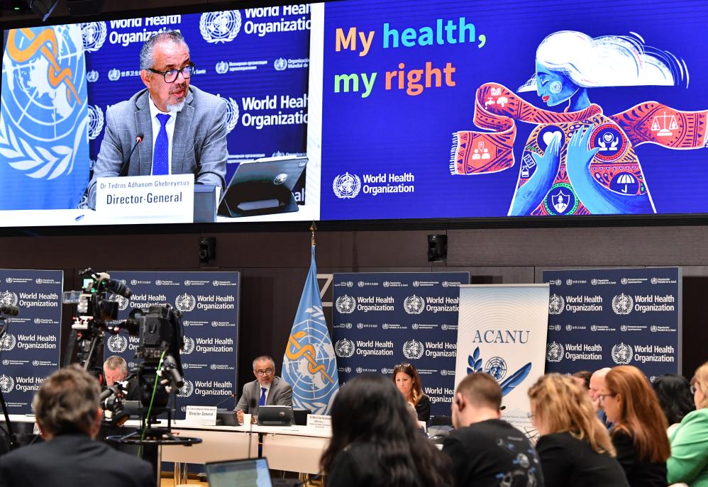2024年12月10日,世界衛(wèi)生組織總干事譚德塞在瑞士日內(nèi)瓦世衛(wèi)組織總部出席年度新聞發(fā)布會(huì)并講話。(新華社記者連漪攝)