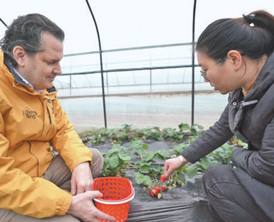 亞歷克斯探訪位于重慶渝北區(qū)的一家草莓園。重慶西部國(guó)際傳播中心供圖