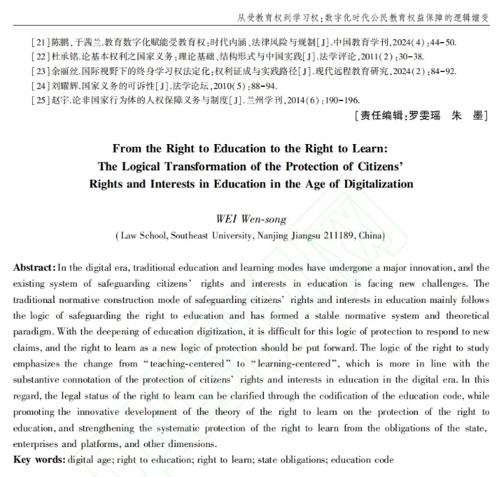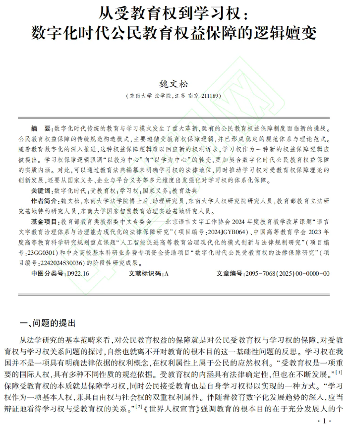 魏文松 | 從受教育權(quán)到學(xué)習(xí)權(quán):數(shù)字化時代公民教育權(quán)益保障的邏輯嬗變