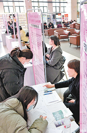 1月22日,湖南永州市道縣周敦頤文化廣場(chǎng),市民在招聘現(xiàn)場(chǎng)了解招聘信息。新華社發(fā)