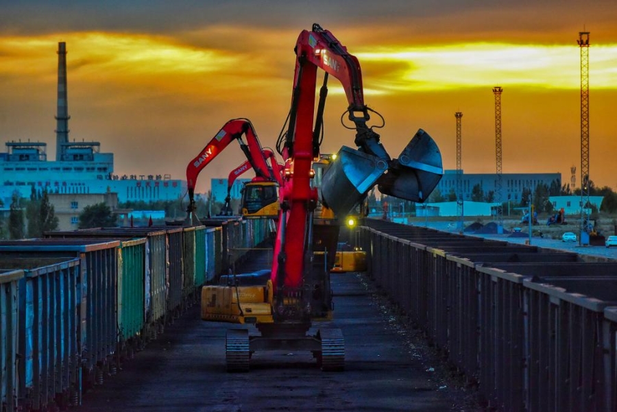 新疆霍爾果斯站換裝庫換十線抓料機(jī)對(duì)散堆裝貨物換裝作業(yè)(2023年9月6日攝)。新華社記者 趙戈 攝