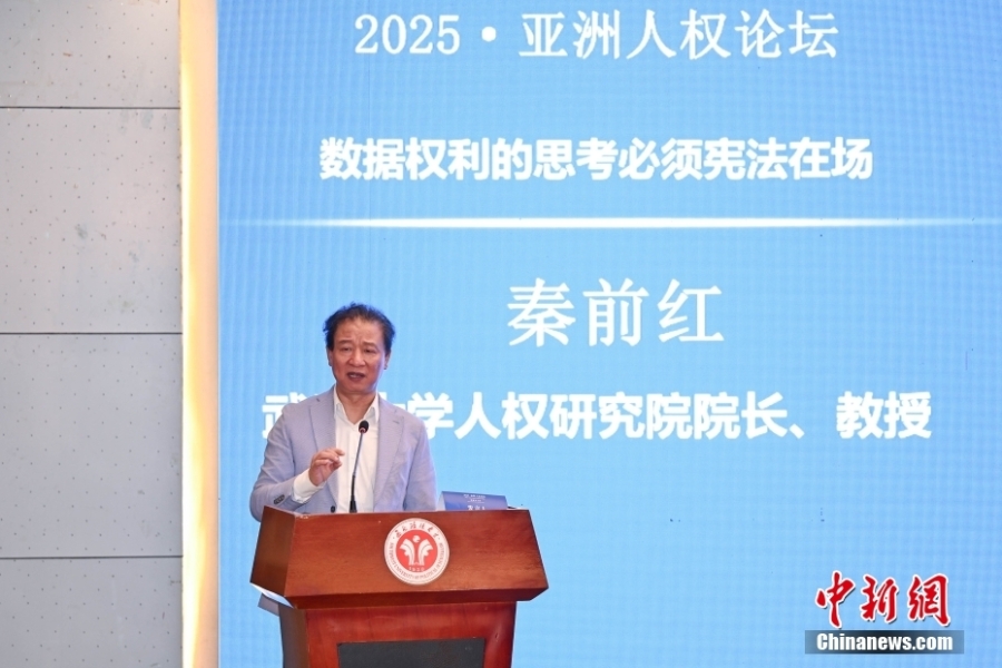 4月19日,2025·亞洲人權論壇在位于重慶市的西南政法大學開幕,來自中國、日本、蒙古國、烏茲別克斯坦等國家的近60位人權專家,通過線上線下方式,聚焦“科技與人權”主題,探討如何推動亞洲國家在科技人權領域的合作與創(chuàng)新。圖為武漢大學人權研究院院長、教授秦前紅在論壇上作主旨發(fā)言。中新社記者 何蓬磊 攝