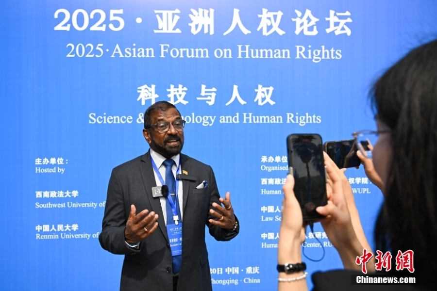 4月19日,2025·亞洲人權論壇在位于重慶市的西南政法大學開幕,來自中國、日本、蒙古國、烏茲別克斯坦等國家的近60位人權專家,通過線上線下方式,聚焦“科技與人權”主題,探討如何推動亞洲國家在科技人權領域的合作與創(chuàng)新。圖為斯里蘭卡前駐印尼和東盟大使、海軍上將、斯里蘭卡國家安全所所長、外交部常務秘書賈亞納特·科隆巴哥在論壇期間接受媒體采訪。中新社記者 何蓬磊 攝