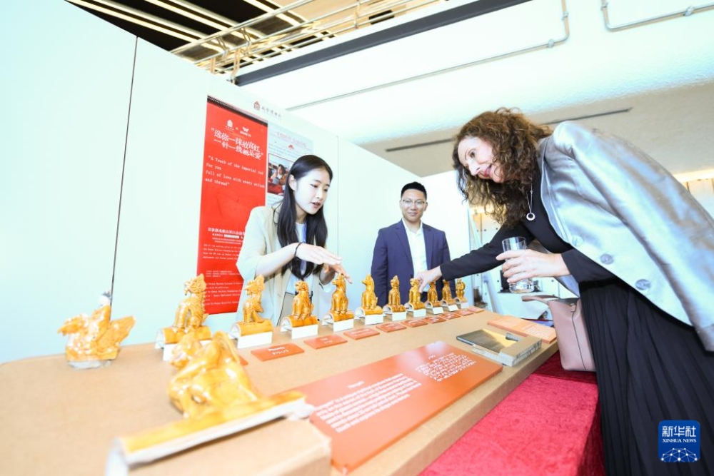 6月16日,在瑞士日內(nèi)瓦萬國宮,嘉賓在“人人享有無障礙:構(gòu)建包容未來”主題展覽上了解故宮博物院推出的脊獸。新華社記者 連漪 攝