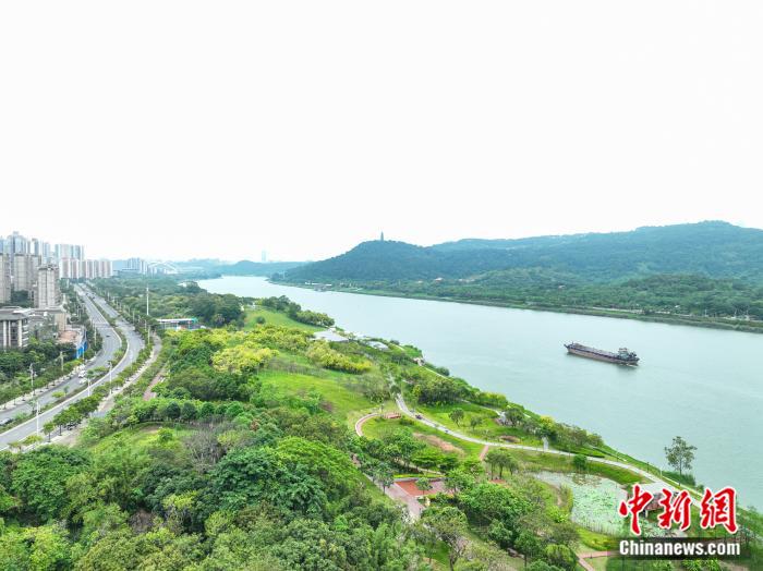 2025年6月5日,廣西南寧市邕江沿岸植被茂密。(無人機(jī)照片) 中新社記者 陳冠言 攝