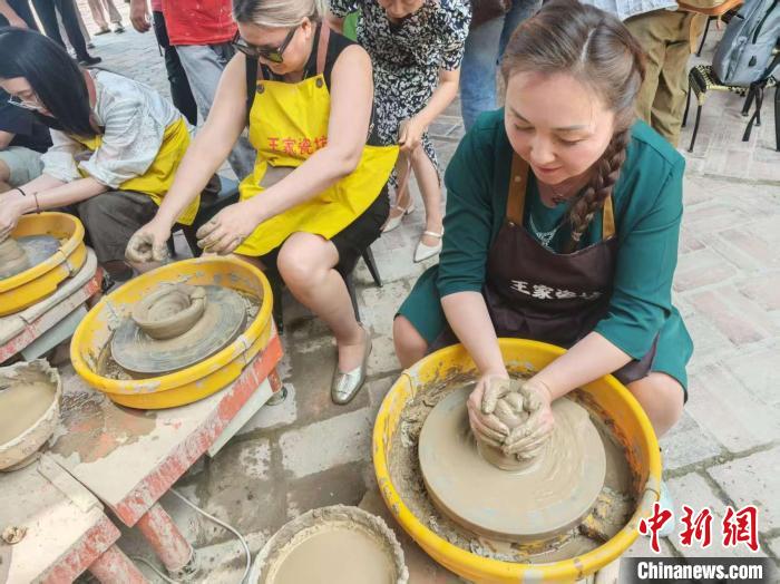 中亞專家在陳爐古鎮(zhèn)體驗(yàn)制瓷。阿琳娜 攝
