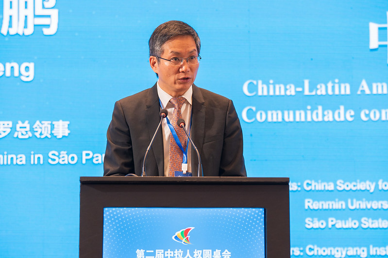 “第二屆中拉人權(quán)圓桌會”25日在巴西圣保羅舉辦。圖為中國駐圣保羅總領(lǐng)事余鵬在開幕式上致辭。主辦方供圖