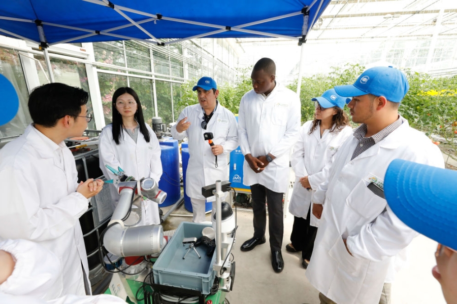 2024年5月22日,“中國(guó)—聯(lián)合國(guó)糧農(nóng)組織南南合作拉丁美洲和加勒比地區(qū)農(nóng)村生計(jì)改善和糧食體系轉(zhuǎn)型能力建設(shè)活動(dòng)”學(xué)員赴江蘇省農(nóng)業(yè)科學(xué)院開(kāi)展交流。新華社發(fā)(江蘇省農(nóng)業(yè)科學(xué)院供圖)