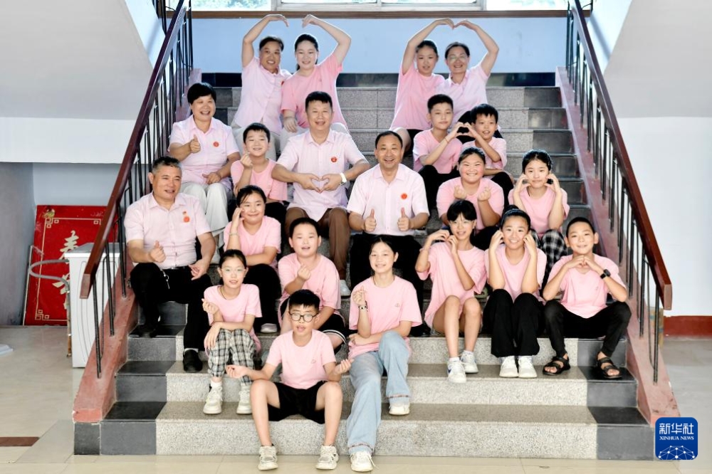 8月5日,在臨沂市臨沭縣孤困兒童心靈家園,徐軍(前右二)正在了解孩子們生活和學(xué)習(xí)中的需求。新華社記者 郭緒雷 攝